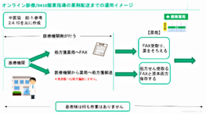 そして、やはり忙しい時間帯がありますので、この場合オンライン服薬指導の予約受付をできないようにしています。 さらに、薬剤配送に関しては、配送の責任者レベルでは理解されてもすべての現場スタッフにまで周知は難しい為、配送箱へいろんな注意事項のシールを作成し貼るようにしています。